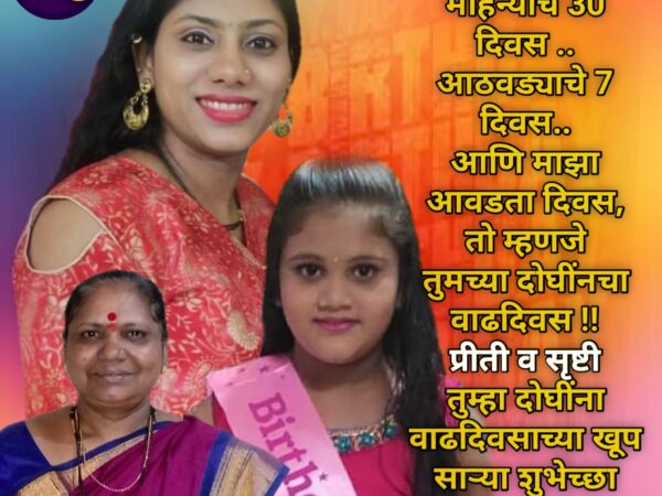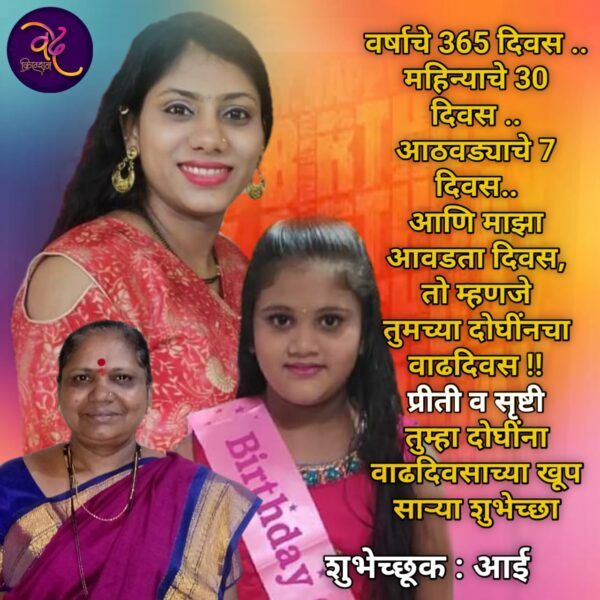 प्रीती आणि सृष्टीला वाढदिवसाच्या हार्दिक हार्दिक शुभेच्छा